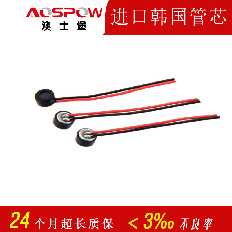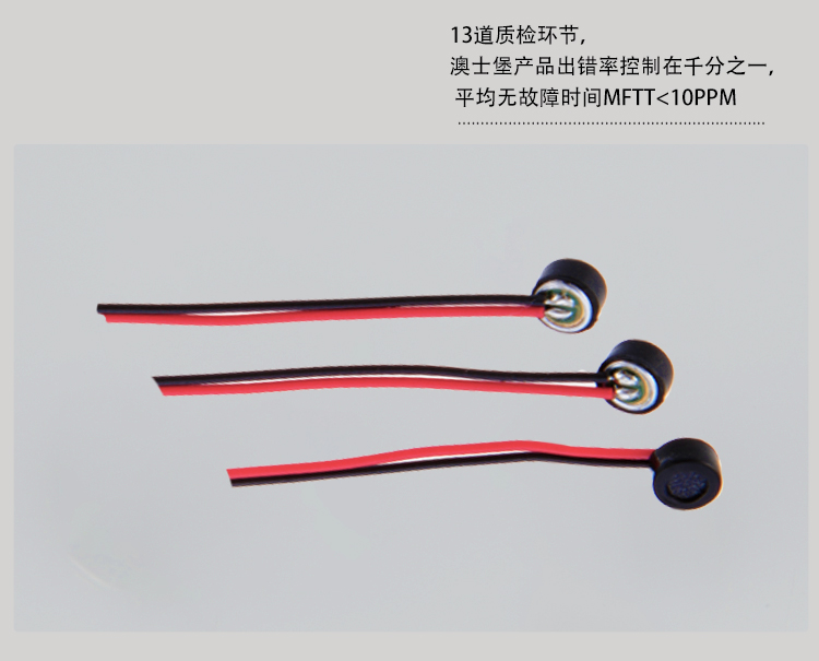 澳士堡咪頭工廠供應藍牙耳機用咪頭,3mm全指向小咪芯,3015焊線咪頭,雙電容抗干擾采用韓國進口管芯定制生產,3mm小體積咪芯適用于藍牙耳機等產品使用。