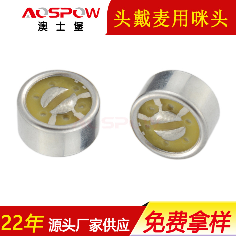 澳士堡降噪咪頭工廠專業生產雙指向咪頭、9750降噪咪芯、頭戴麥用傳聲器,尺寸:9.7*5.0mm,內置雙電容有效屏蔽射頻干擾信號,雙指向結構有效屏蔽環境噪聲,適用近距離頭戴耳麥產品等設備。